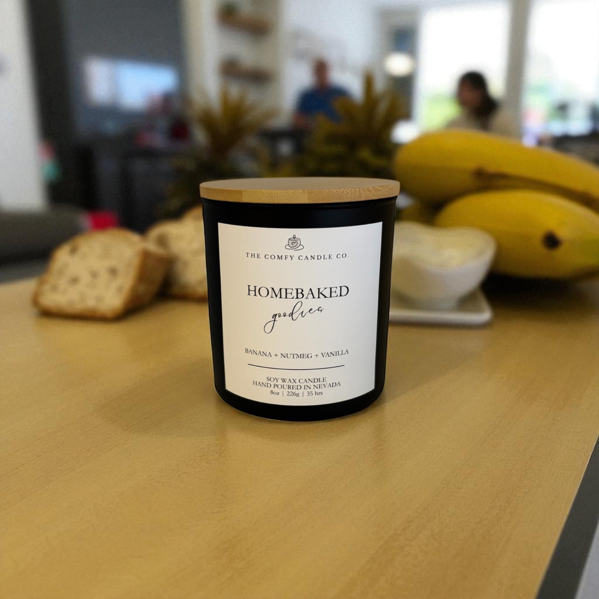 Immerse your home in the rich, inviting scent of warm baked goodies with this 8 oz. candle. Featuring notes of freshly baked banana bread and aromatic spices, it evokes a comforting ambiance reminiscent of a cozy kitchen. Expertly crafted to deliver a balanced fragrance, this candle enhances your space with a subtle yet delightful warmth.